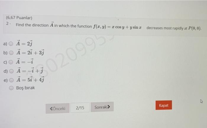 Solved 6 67 Puanlar 2 Find The Direction A In Which The Chegg Com